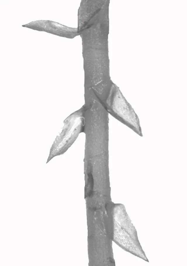 Skudd mellomstore, oftest i små matter. Hoder lysgrønne, noe til tydelig hvelvede, utydelig til noe 5-delte. Toppknopp utydelig til skjult. Hodegreiner sidekrøkte og tilspissede, med gradvis overgang fra inner- til yttergreiner, uten rødfarge ved basis; innergreiner innoverkrøkte. Greinknipper løst sammenstilte, med 2(–3) utstående greiner og oftest 2–3 hengegreiner noe sprikende fra stengelen. Utstående greiner noe sigdformet krøkte og tilspissede i ytre del, til nokså rette. Greinstengel uten eller sj. med svak rødfarge mot festepunktet til stengel. Greinblad vanligvis ikke-rekkestilte, noe til tydelig sidebøyde, forholdsvis korte, smalt egg–lansettformede, med innbøyde kanter mot spissen, men ikke markert rørformede. Stengel lyst grønn, sjelden med svakt rosa/lysrøde flekker. Stengelblad relativt store, varierende utstående fra stengelen, smalt til forholdsvis smalt trekantet–tungeformede, vanligvis tydelig lengre enn brede; bladspiss smalt til butt tilspisset. N = 19 (trolig). Dioik. Sporehus nå og da. Sporemasse lysbrun.