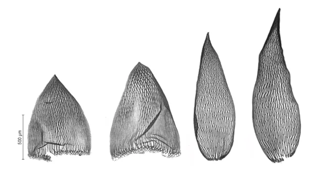 S. brevifolium (br), S. angustifolium (an), S. isoviitae (is) og S. rubellum (ru)