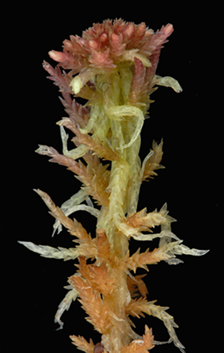 Skudd små (til middelstore), lavvokste, med mykt fløyelsaktig utseende, oftest i små, flate matter eller svakt hvelvede puter med tettstilte skudd. Hoder blekgrønne til gråaktig gulgrønne, ofte med varierende innslag av rosa–rødfiolett, lite differensierte fra hverandre sett ovenfra, flate til noe hvelvede, utydelig 5-delte. Toppknopp utydelig til skjult. Hodegreiner butte; yttergreinene ofte skrått og krummet oppoverrettede; greinbladspisser i midten av hodet ofte tydelig tannet avskårne (lupe mot lyset!). Greinknipper med (1–)2 utstående og (1–)2 oftest noe lengre, stengeltilsittende hengegreiner. Utstående greiner kort tilspissede, uregelmessig utstående fra stengel til ofte noe oppoverrettede. Greinstengel grønn. Greinblad glissent ikke-rekkestilte, smalt eggformet– elliptiske til elliptiske, løst taklagte, oftest noe utsperrede; spiss smalt avkuttet, men ofte synlig tannet (lupe!). Stengel normalt helt lys, noen ganger med svakt rosa parti(er). Stengelblad store og slappe, tungeformede til ofte egg–tungeformede og bredest på midten; bladspiss butt tilspisset og oftest tydelig tannet. N = 19. Monoik. Sporehus relativt vanlige, små. Antheridiale greinspisser utydelig differensierte, men oftest noe rosafargede. Sporemasse lysbrun.