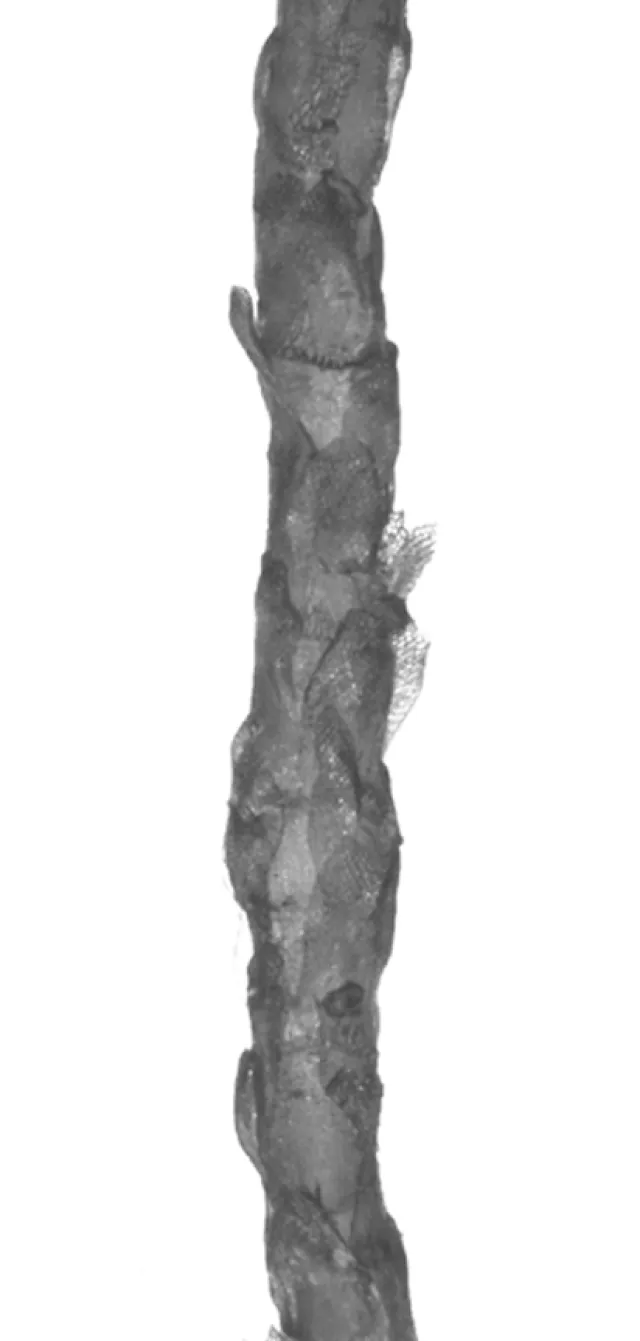 Hunnskudd med sporehus og hannskudd med antheridiale greiner.