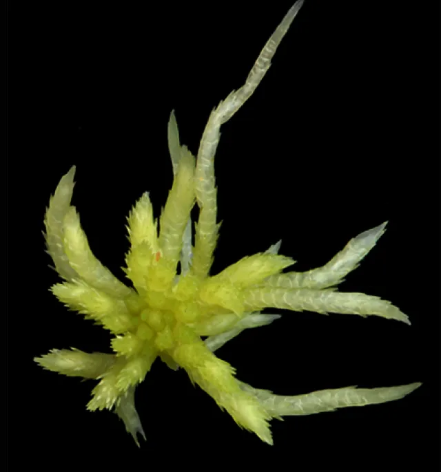 Skudd små, i små matter og puter. Hoder dominerende lysgrønne, noen ganger med gulbrunt innslag, flate til noe hvelvede, noe til tydelig 5-delte. Toppknopp tydelig, konisk, oftest noe lengre enn noe flate innergreiner. Yttergreiner lange, noe uregelmessig krøkte med kvite, glassaktige, tynne spisser. Greinknipper med 2(–3) utstående og 1–2(–3) stengeltilsittende til noe sprikende hengegreiner. Utstående greiner noe uregelmessig bøyde og ± nedoverkrummede i ytre deler, ender i lange, tynne og bleke spisser. Greinstengel lys. Greinblad ikke-rekkestilte, tett taklagte, rette, egg–lansettformede. Stengel lys til noen ganger med svakt gulbrunt islett. Stengelblad bredt spatelformede og bredt avrundede i øvre del; bladspiss og øvre halvpart av de to sidekantene tydelig frynsete. N = 19. Monoik til polyoik. Sporehus svært vanlige. Sporemasse gulbrun.
