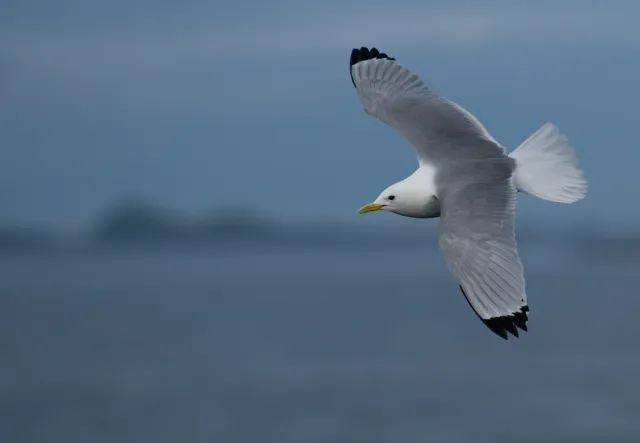 Krykkje er en liten måkefugl med gult nebb og svarte bein.