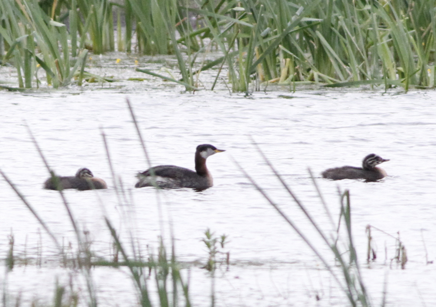 Gråstrupedykkeren er en nykommer som hekkefugl i Norge. Den hekker gjerne i frodige ferskvann. Her er en voksenfugl med sine to unger som kjennetegnes på de stripete hodesidene. Disse forsvinner i løpet av den første høsten.