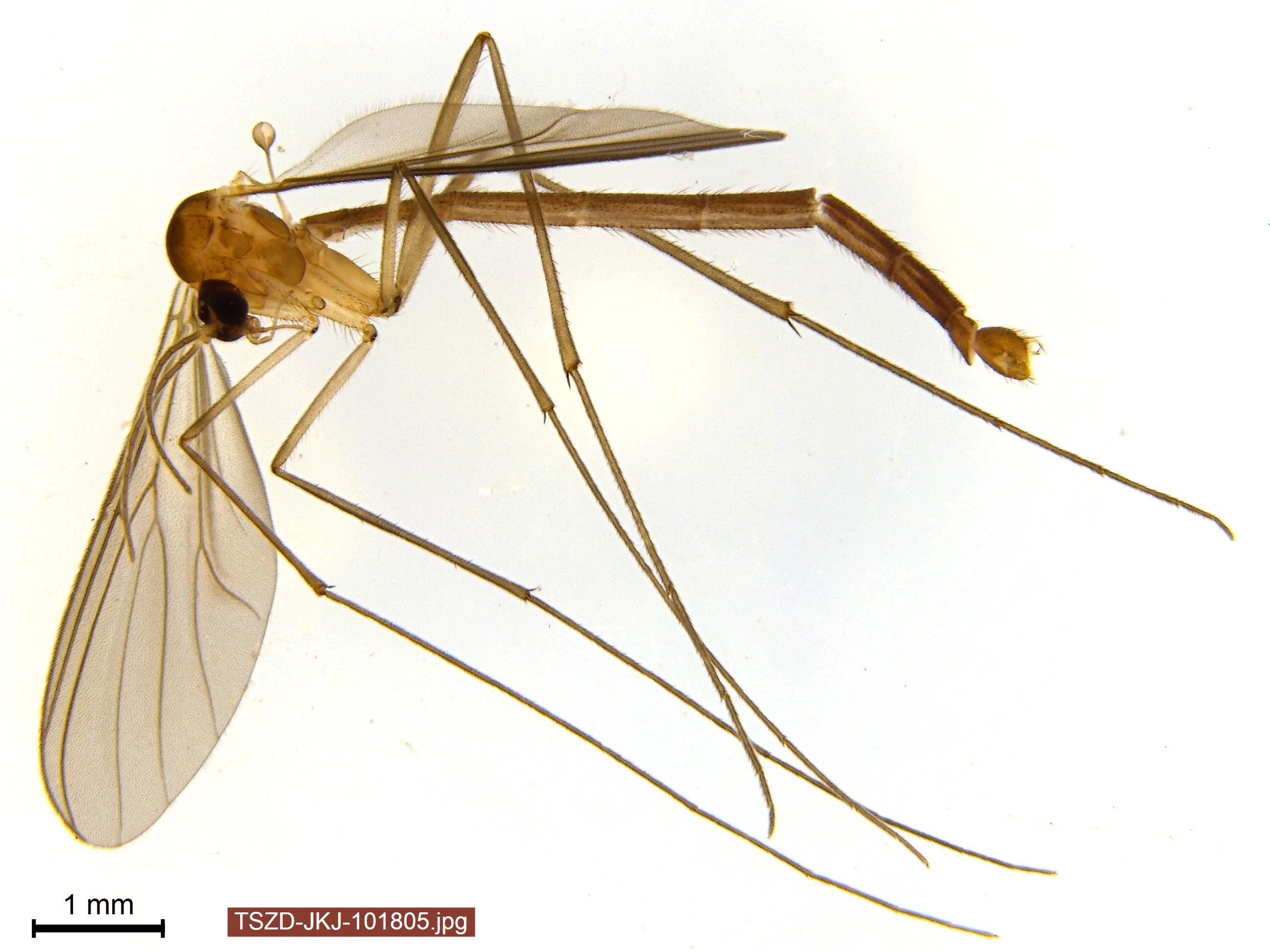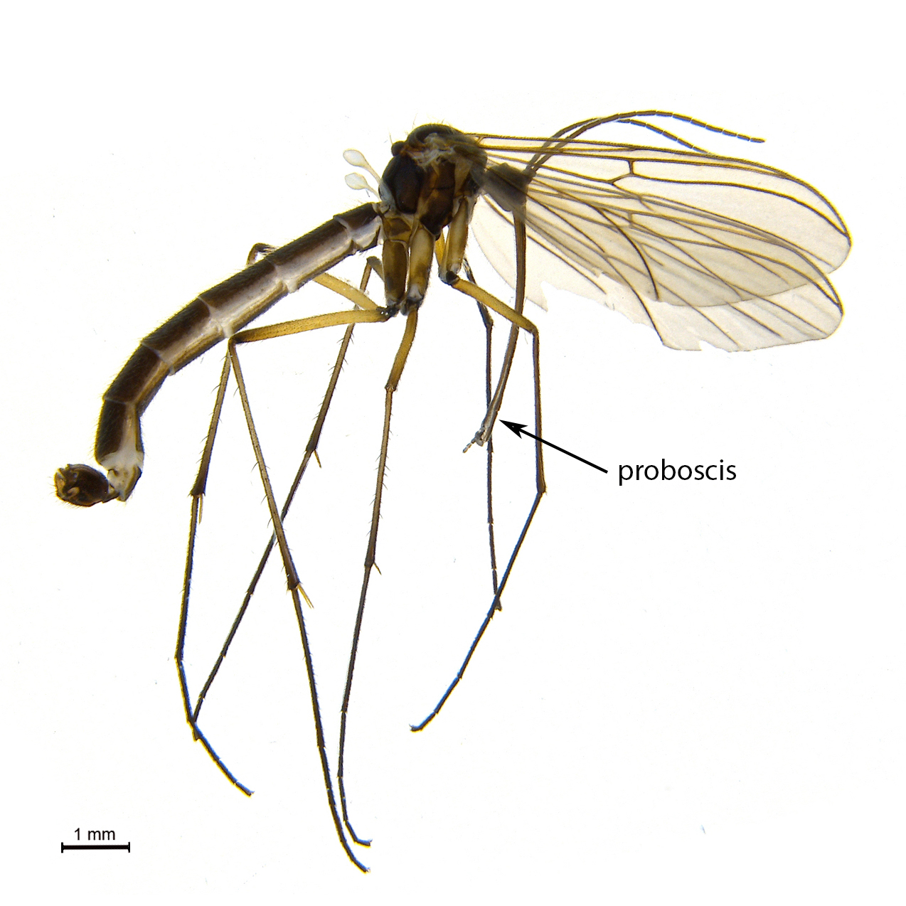 Bildet viser en hann av arten Gnoriste longirostris som ble funnet på Kvaløya utenfor Tromsø høsten 2014. Hele tre av fire norske arter i soppmyggslekten Gnoriste er funnet og DNA-strekkodet i prosjektet. To av de representerer første funn i Nord-Norge. Slekten Gnoriste karakteriseres bl.a. ved at munndelene er utstrakt til et lang sugerør (proboscis) hvor lengden er artsspesifikk. Hver art er antakelig tilpasset pollinering av hver sin blomsterart, men man vet foreløpig så godt som ingenting om biologien til disse store og flotte soppmyggene. I Japan har dr. Yudai Okuyama forsket på det tette samspillet mellom en Gnoriste-art som har larver som lever i mose og de voksne myggene som pollinerer flere arter i blomsterslekten Mitella.