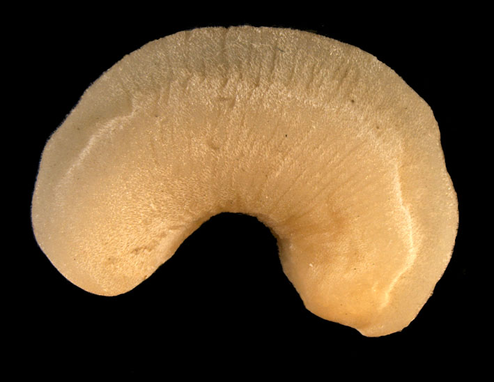 Dette unge eksemplaret av Falcidens sagittiferus (Caudofoveata) danner en nesten perfekt sirkel.