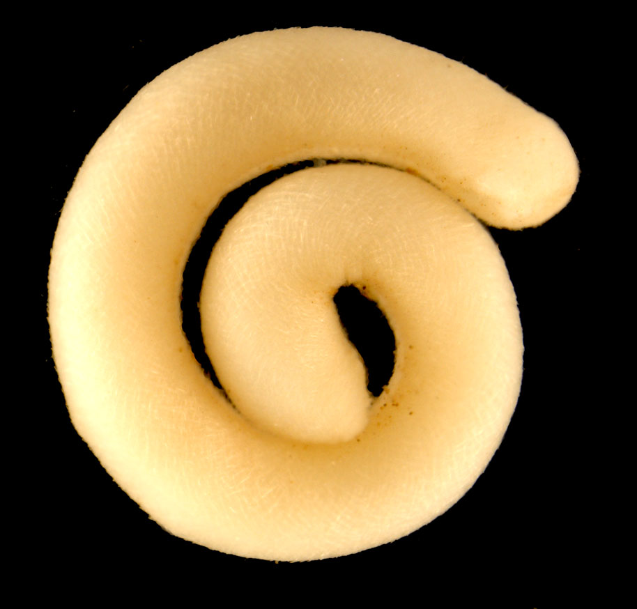 Dette unge eksemplaret av Falcidens sagittiferus (Caudofoveata) danner en nesten perfekt sirkel.