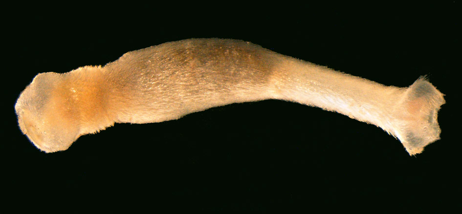Unge eksemplarer av Chaetoderma nitidulum (Caudofoveata), som denne på bildet, har tidligere blitt klassifisert som en annen art, Falcidens sterreri.