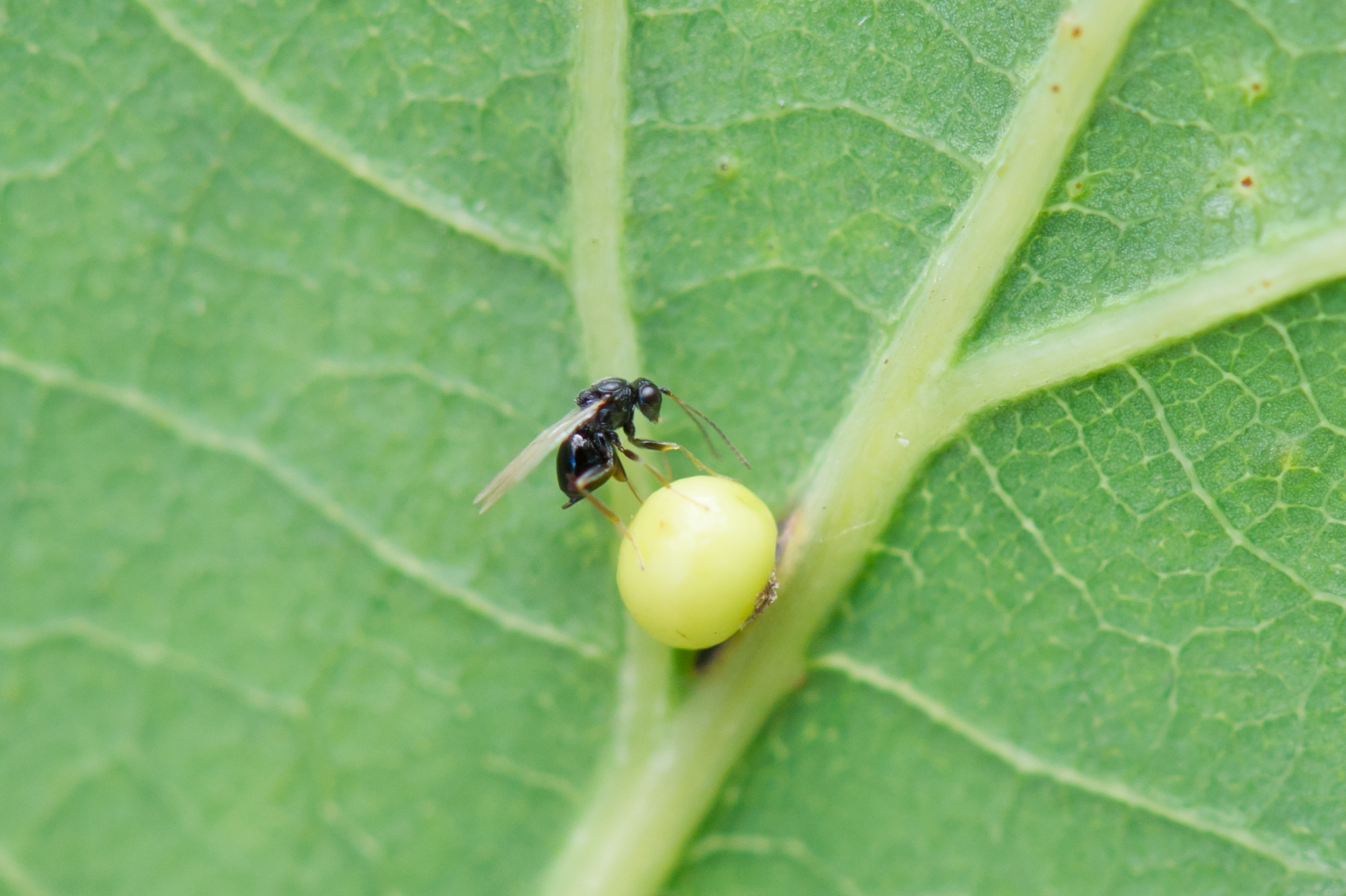 En liten gallveps ser dagens lys etter en lang vinter under snøen.