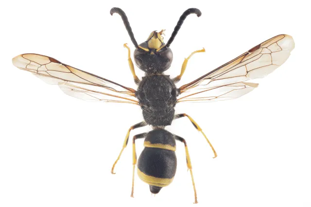 Hunn av trebåndet murerveps Ancistrocerus trifasciatus.