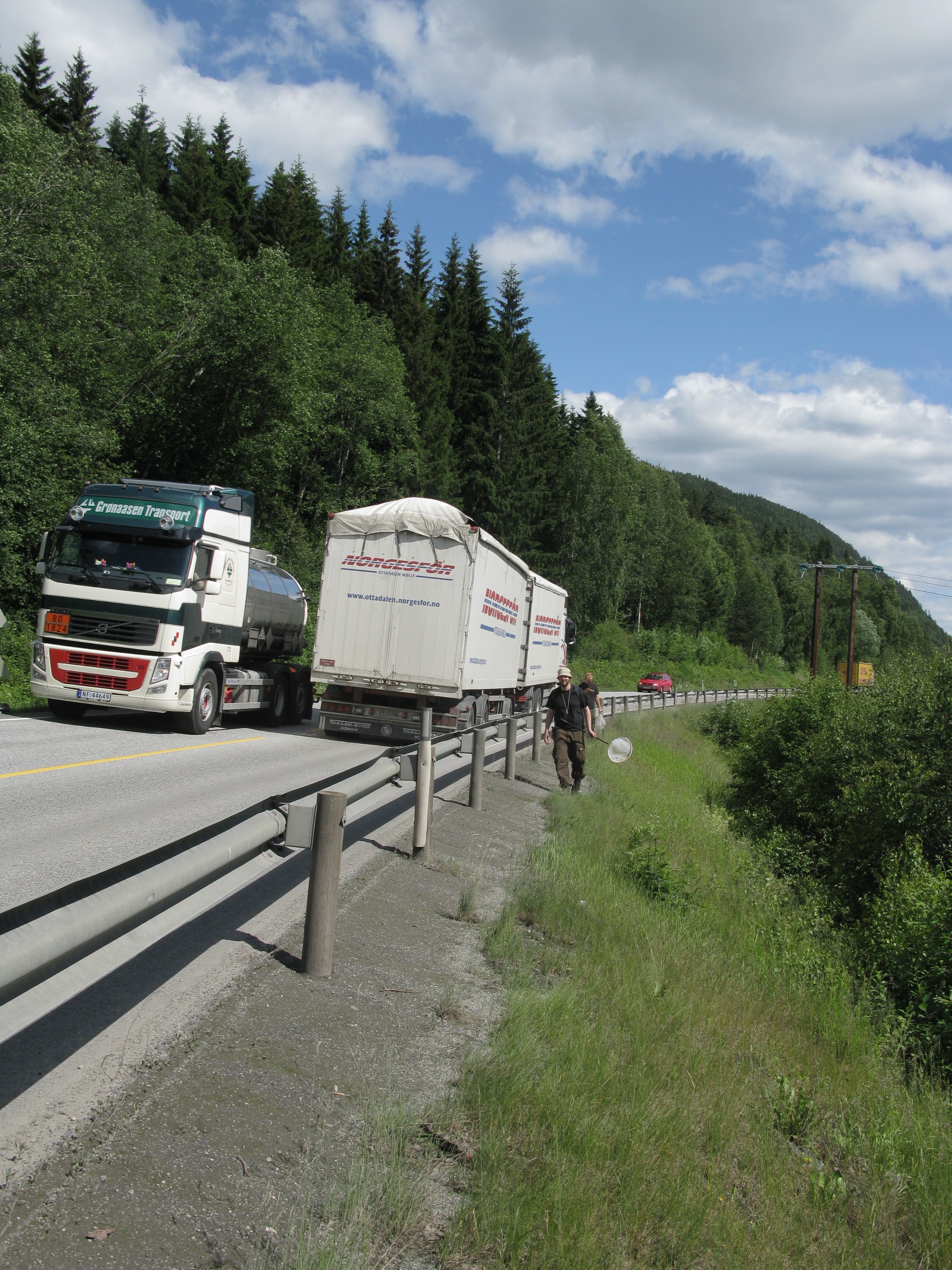 Jan Laugsand og Hallvard Holtung håver langs E6.