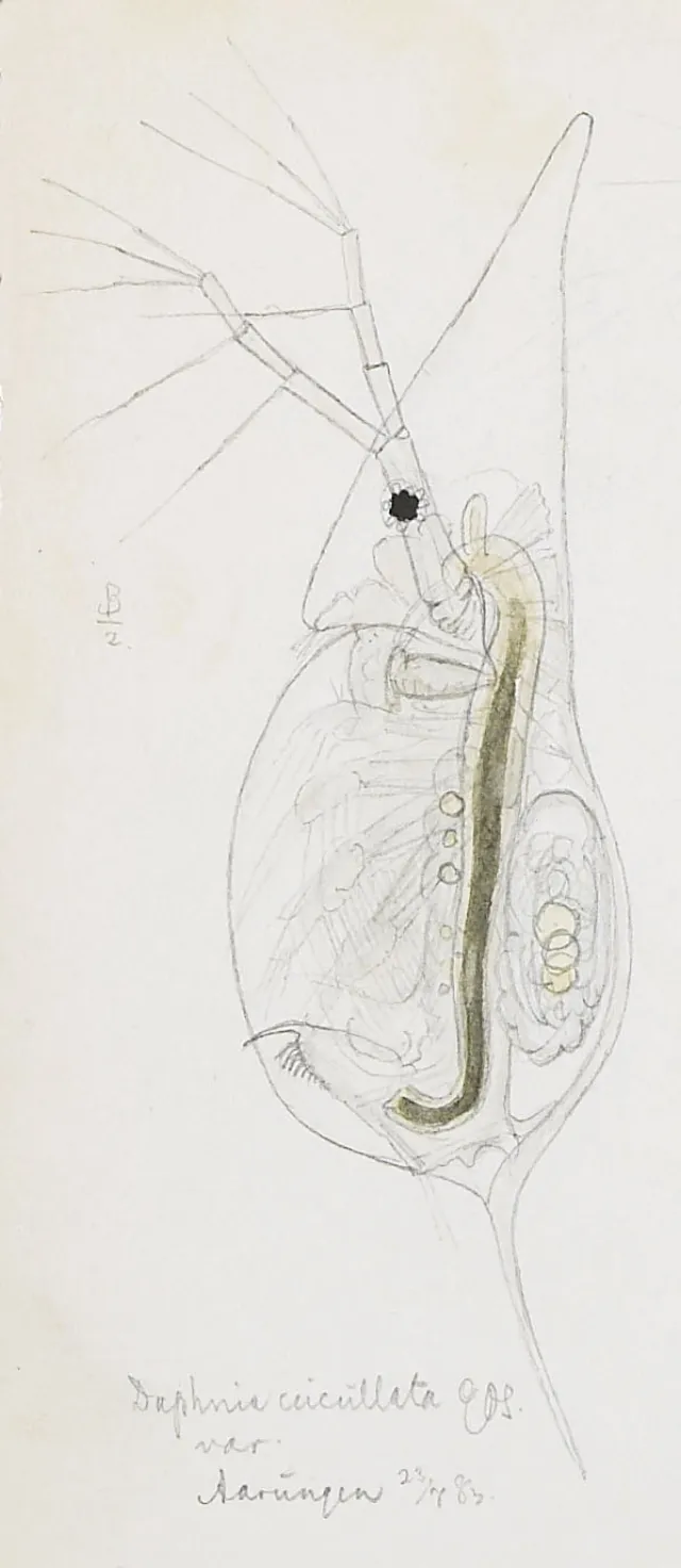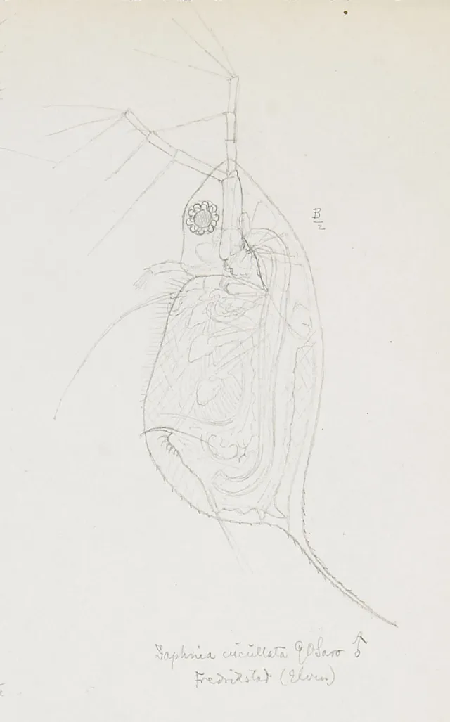 Spisshjelmdafnie, som er den minste av dafniene i Norge, har et langt spisst hode som mangler punktøye. Den er vanlig i næringsrike vann i lavlandet, og er aldri funnet nord for Lillehammer.
