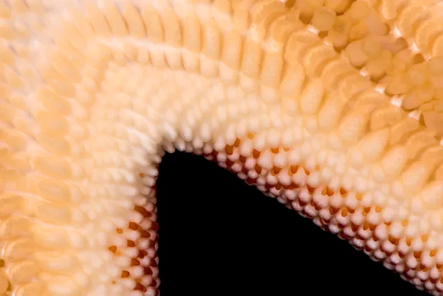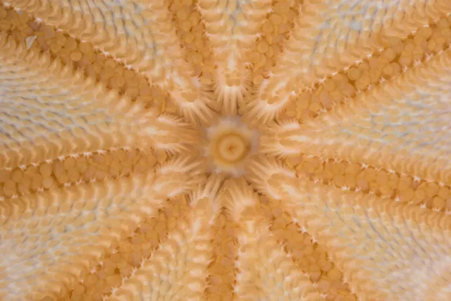 S. glacialis: 7 armer. Piggklasene på oversiden er avflatet. 3 adambulakralpigger og 4 furepigger.