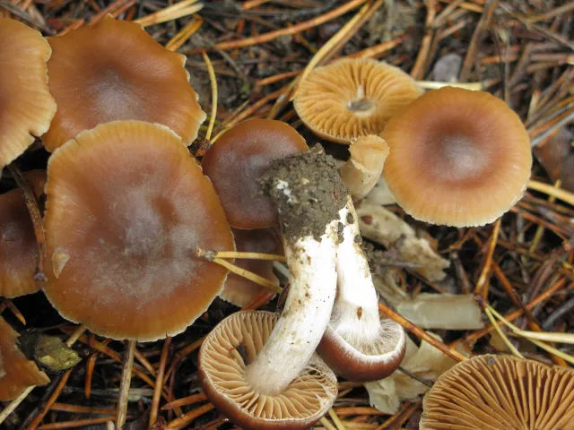 Daddelslørsopp har fått sitt norske navn på grunn av den daddelfargede hatten.