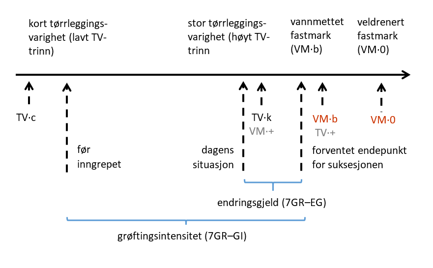 Variabelen 7GR–GI skal angi forventet omfang av endring i artssammensetning (langs TV og VM) som vil ha funnet sted fra grøftingsinngrepet ble foretatt til det igjen er oppnådd en dynamisk likevekt mellom artssammensetning og miljøforhold, det vil si når artssammensetningen har tilpasset seg de nye miljøforholdene. Vurderingen skal baseres på forutsetningen om at ikke ytterligere inngrep finner sted.
