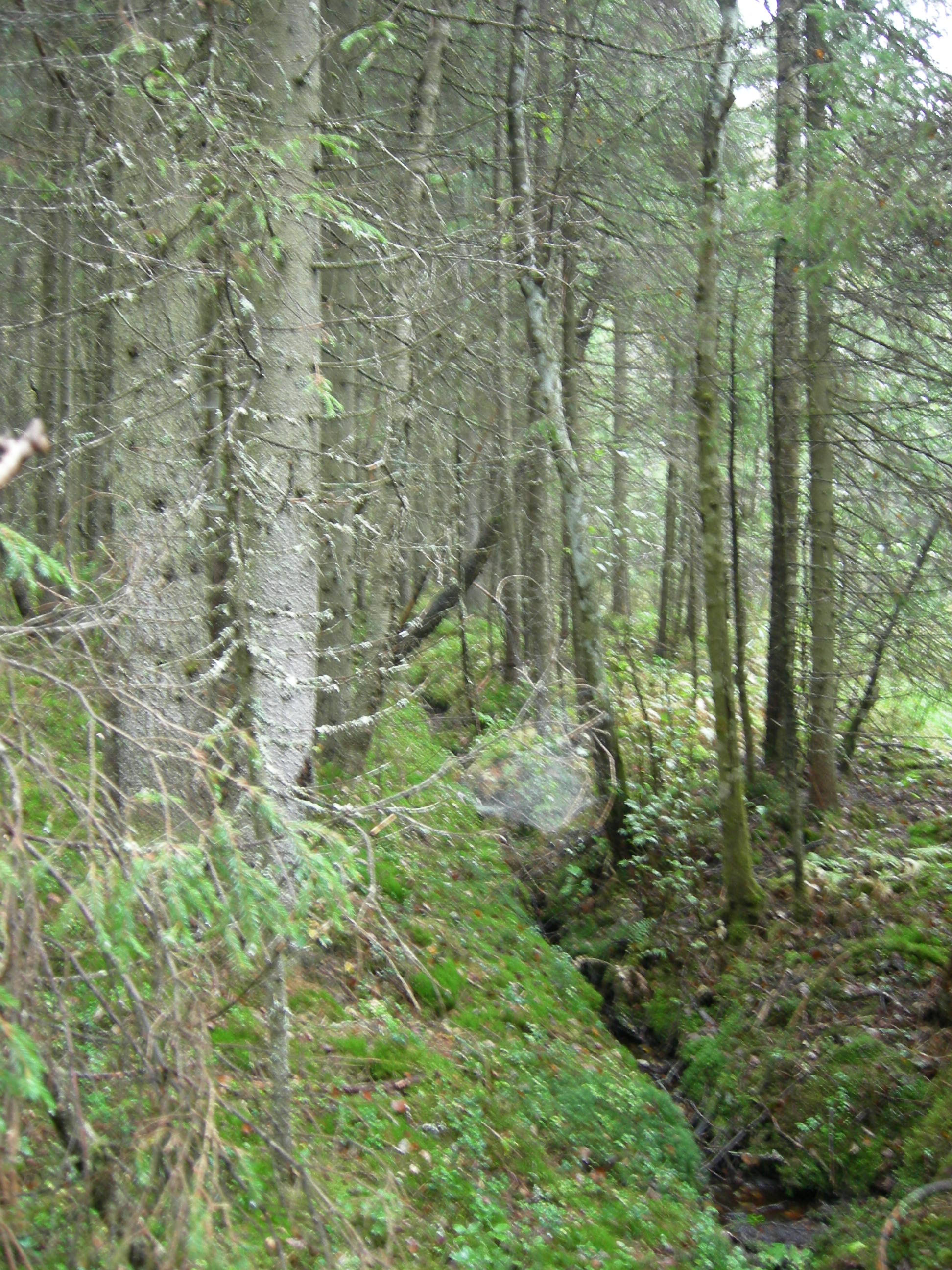 Gjennomgripende grøftet (7GR–GI∙5) myrskogsmark (V2) i Østmarka (Akh: Enebakk: Delisetra), som over tid vil utvikle seg til en fastmarksskogsmark (T4). På tidspunktet bildet ble tatt, hadde områdene på begge sider av grøfta fått fastmarkskarakter, men uten å inneholde mer enn noen få typiske fastmarksskogsarter. Endringsgjelda  ble anslått til et sted mellom 1 og 2 ØAE, dvs. verdi 3 for 7GR–EG.