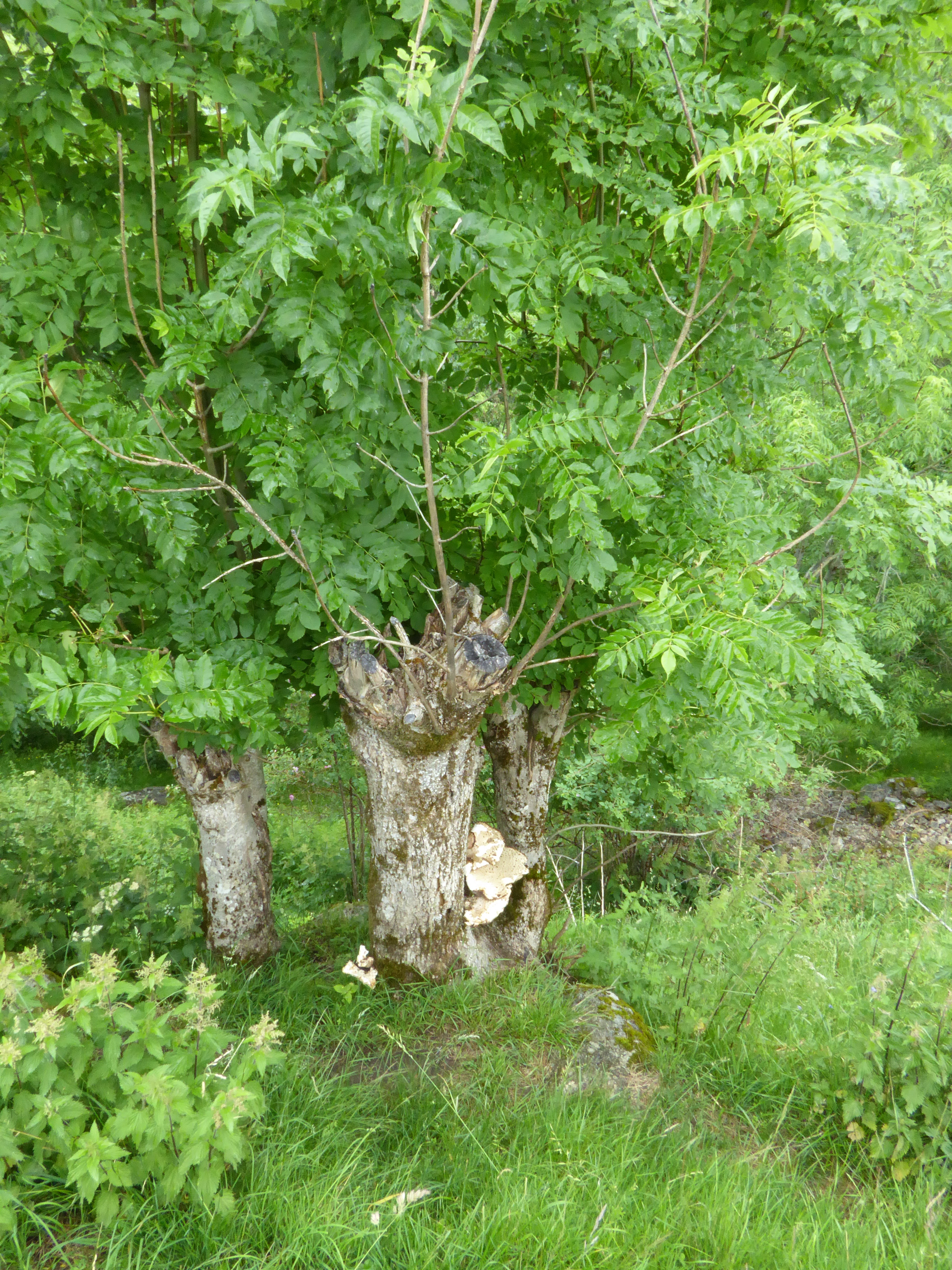 styvingstrær av ask på Grinde i Leikanger (SF) ... gammelt styvingstre som ikke har vært lauvet på flere tiår