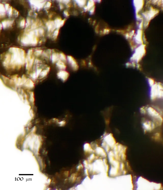 Ynglekorn (gemmulae) fra vanlig ferskvannssvamp Spongilla lacustris.