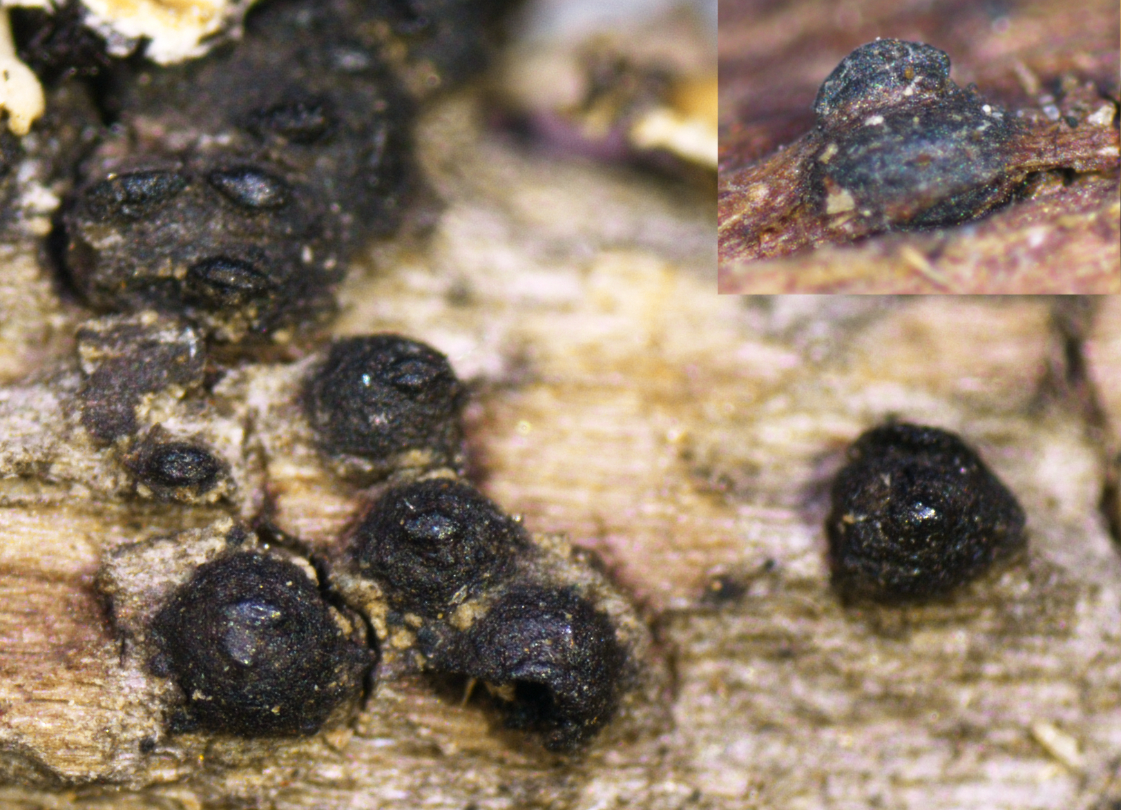 Ascomata - fruktlegeme til soppen Lophiopstoma compressum.