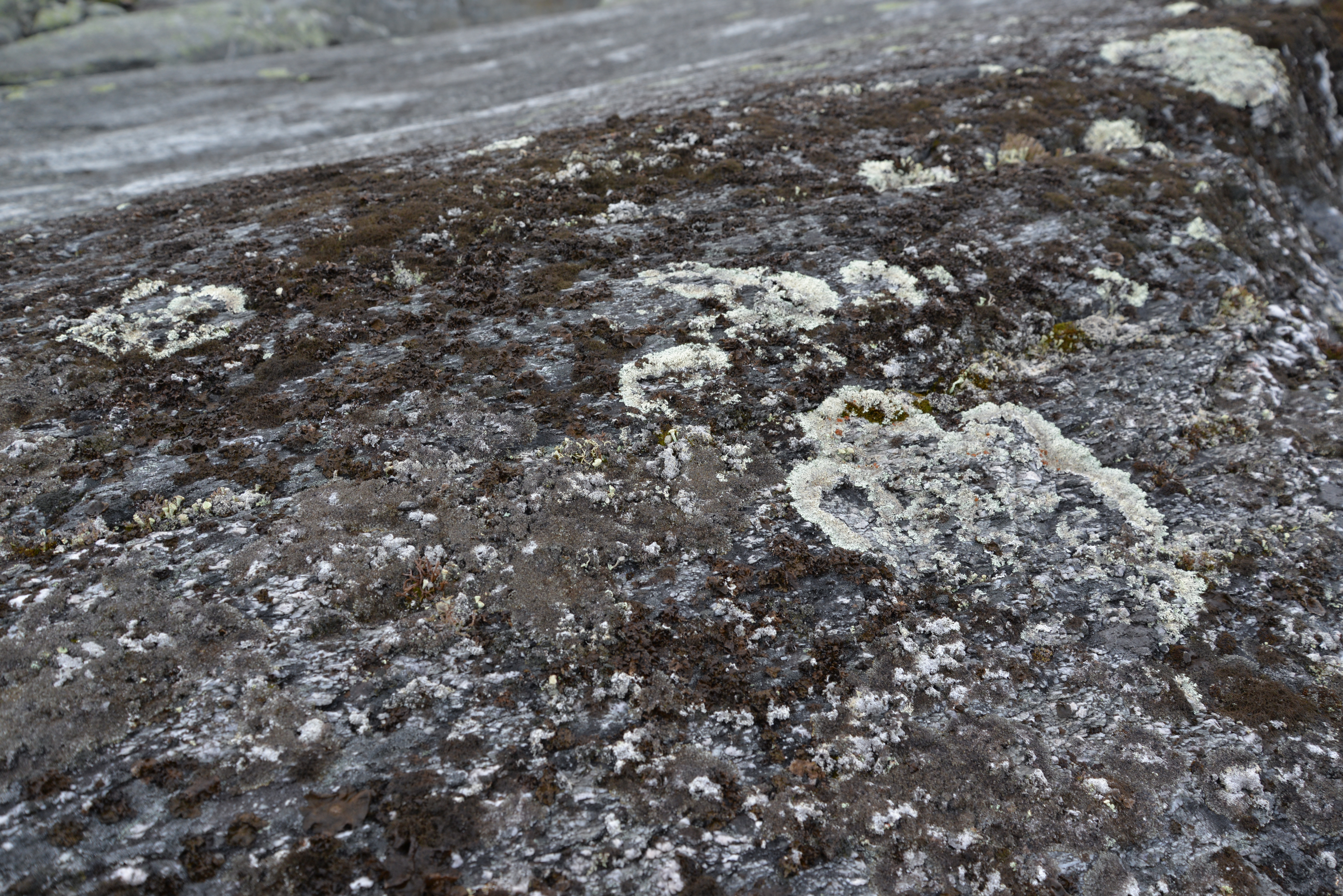 Ofte små forekomster. Loddrette bergvegger vanskelig å se i flybilder. Knauser og flatberg med lys grå til mørk farge.