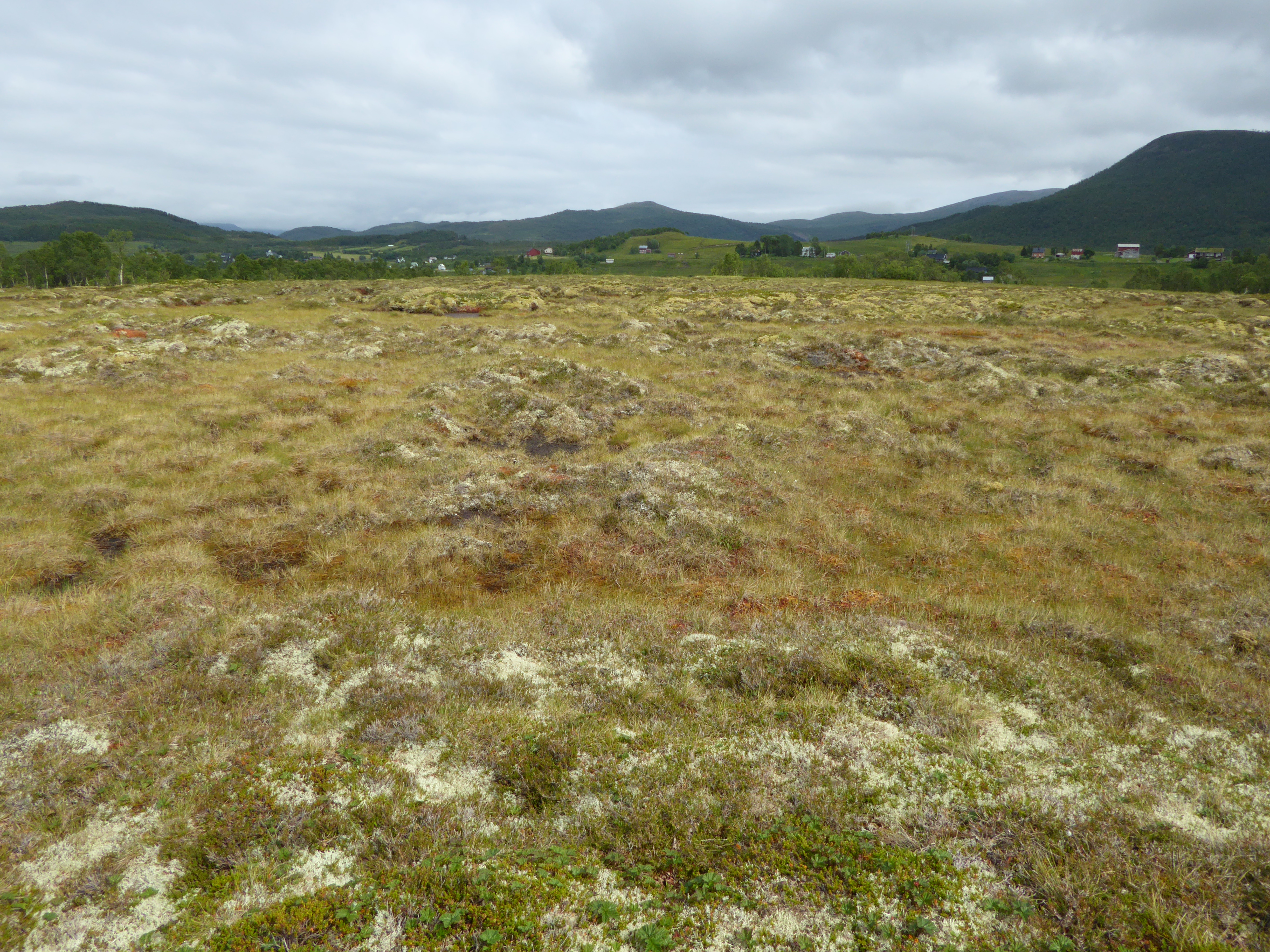 Forekommer først og fremst i flatt terreng eller i forsenkninger. Flyfoto: Farge som regel brun til mørk grønn; lys brun ved høyt innslag av gras eller lyse torvmoser. Tuer gir karakteristisk veksling i tekstur. Tekstur og farge varierer lite innen og mellom regioner. På flyfoto fremstår typen med karakteristiske strukturer på høymyr, men ved kysten som åpne områder med jevn struktur som kan være vanskelig å skille fra andre åpne områder.
