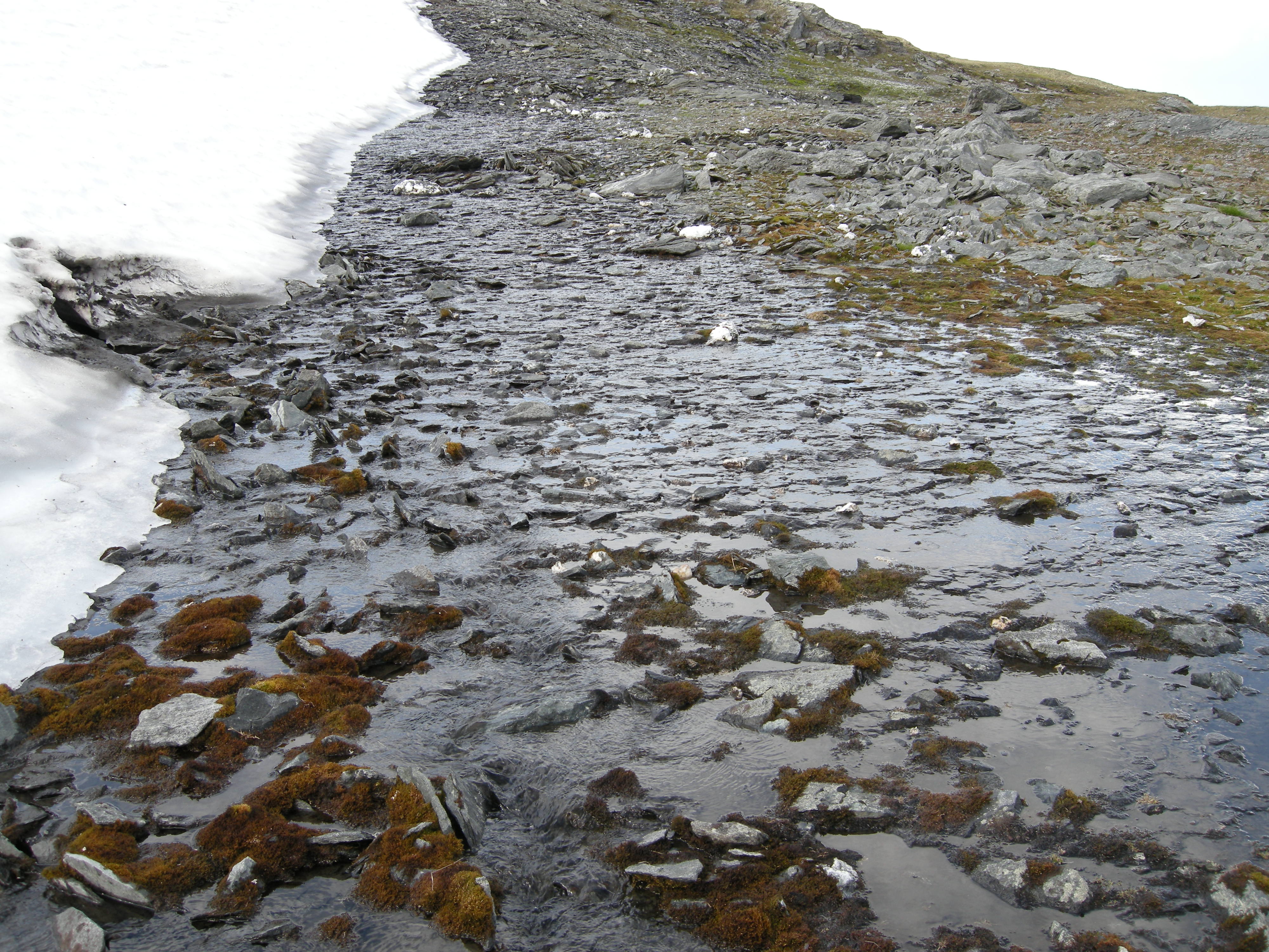 Snøleier på permanent våt mark i fjellet. Karplanter mangler og bunnsjiktet er mosedominert. Jordflyt er nesten alltid til stede og naken stein og grus dekker store flater.