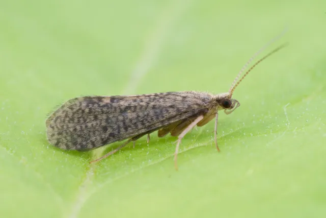 Larvene konstruerer buede fangstnett i rennende vann for å filtrere næringspartikler ut av vannet.