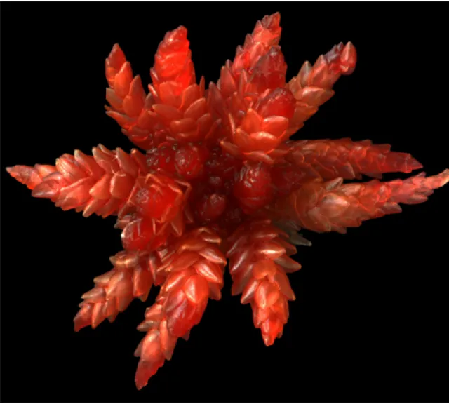 På tidlig forsommer kan en treffe på skudd med hoder som er dominerende gulgrønne av farge, omgitt av typisk rødfargede hoder. Disse vil ut over sommeren etter hvert utvikle seg til normalt rødfargede skudd.