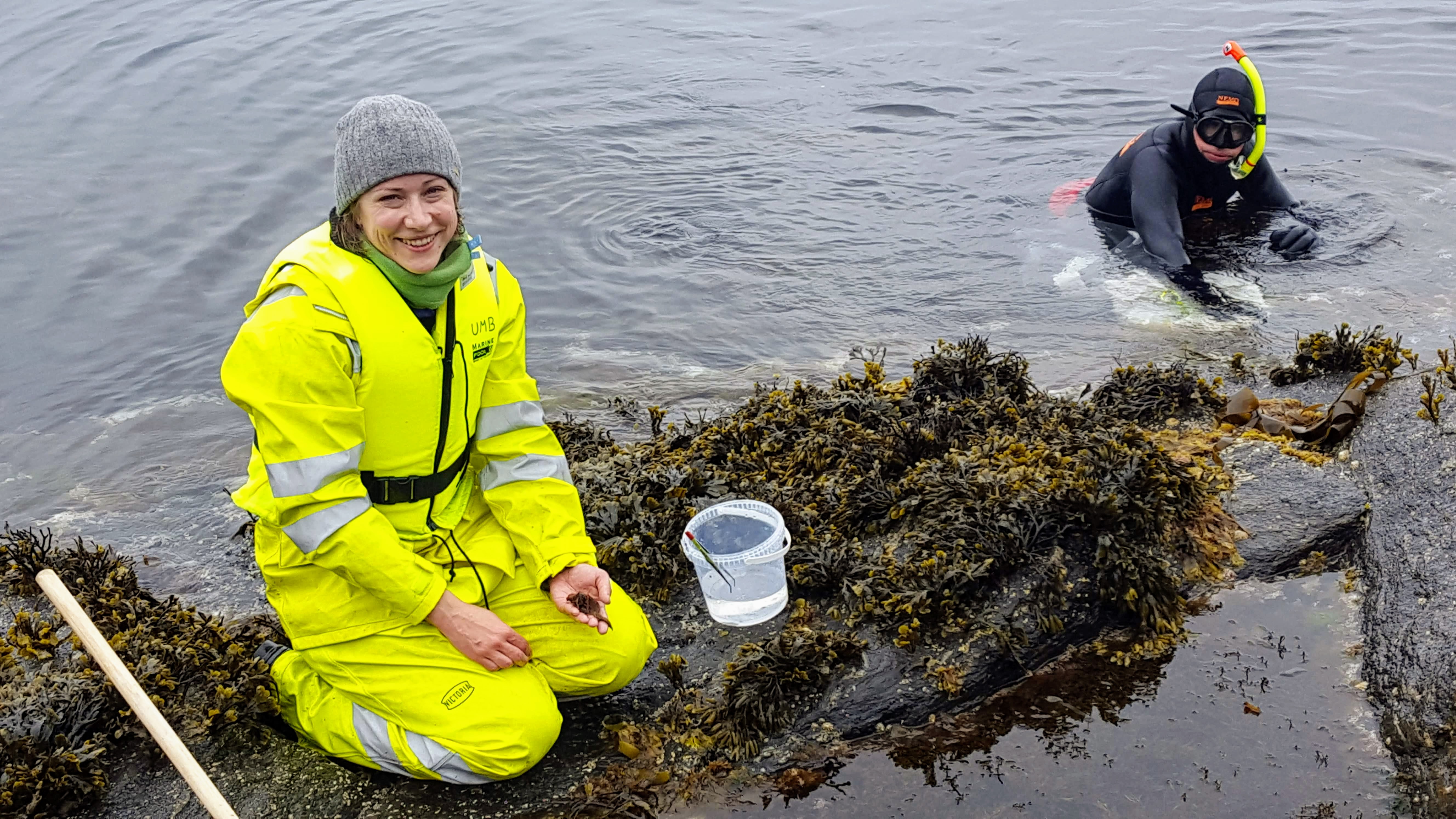 Kvaløya i Sømna kommune. Stortare og evertebrater samles med snorkeldykking. Det ble plukket dyr fra fjærebeltet og fra dammer under flomålet.