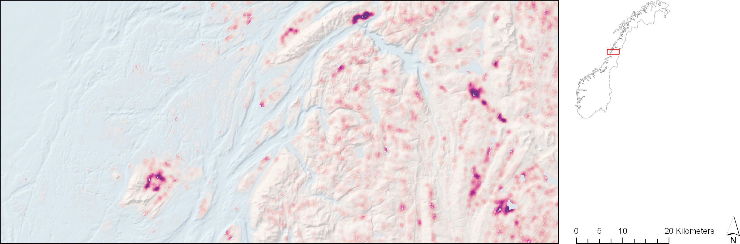 Gradient som uttrykker i hvor stor grad landskapet er preget av myrer, våtmarker og mindre ferskvann (tjern, putt, o.l.).