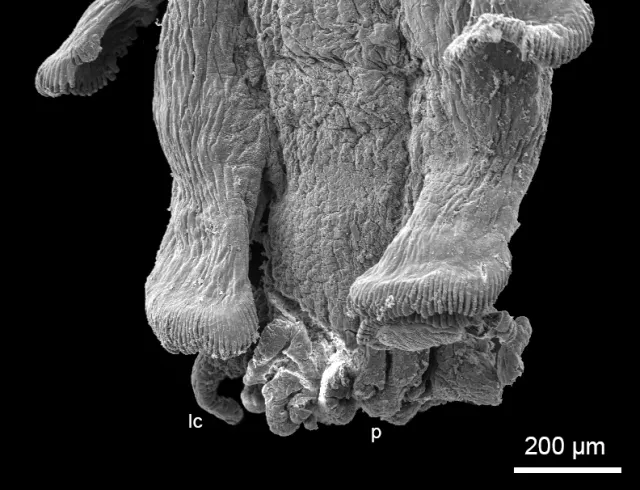 Pygidium: With two long lateral cirri and several small rounded papillae; one pair of eyespots present.