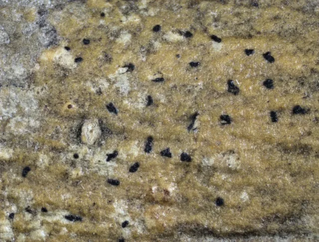 Kantflekklav Arthonia excipienda samlet ved Nyveien i Holmestrand (O-L-148222).
