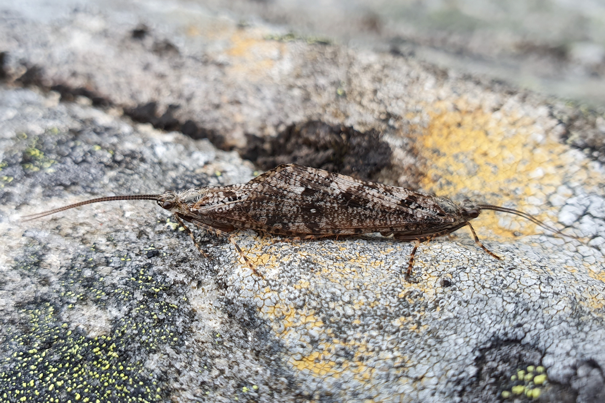 Agrypnia varia er en middels stor vårflue med moderat brede, mørkegrå og kraftig brokete framvinger. Arten er vanlig i kystnære strøk i Sør-Norge og er funnet nord til Nordland. Larven lever i dammer og sjøer. Den bygger et rett, portabelt hus av biter av plantemateriale arrangert i spiralform.