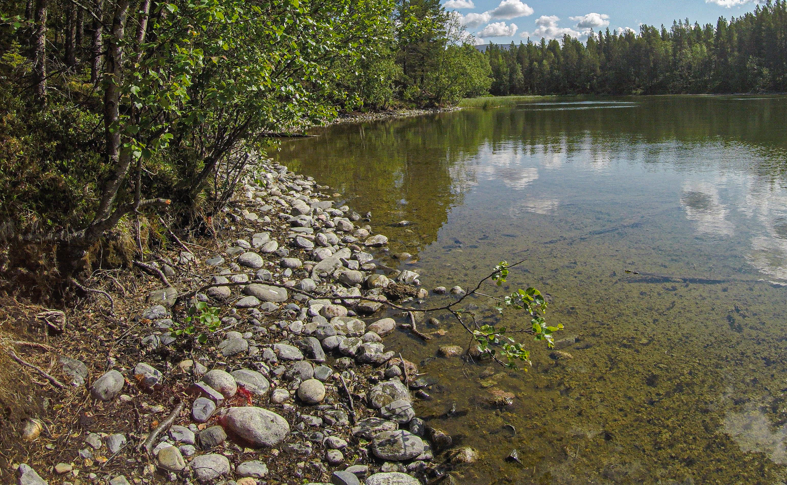 Svært kalkrik (20 mg Ca/l) beskyttet fast strandkant i Lille Ljosvatnet i Nordreisa kommune.