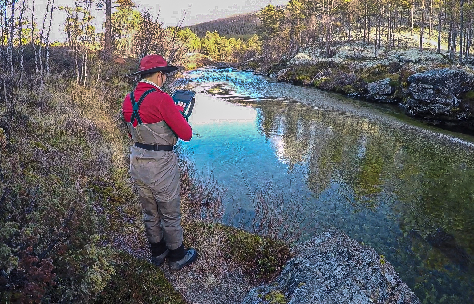 Kartlegging av bunnsubstrat i den svært kalkfattige elva Atna i Folldal kommune.