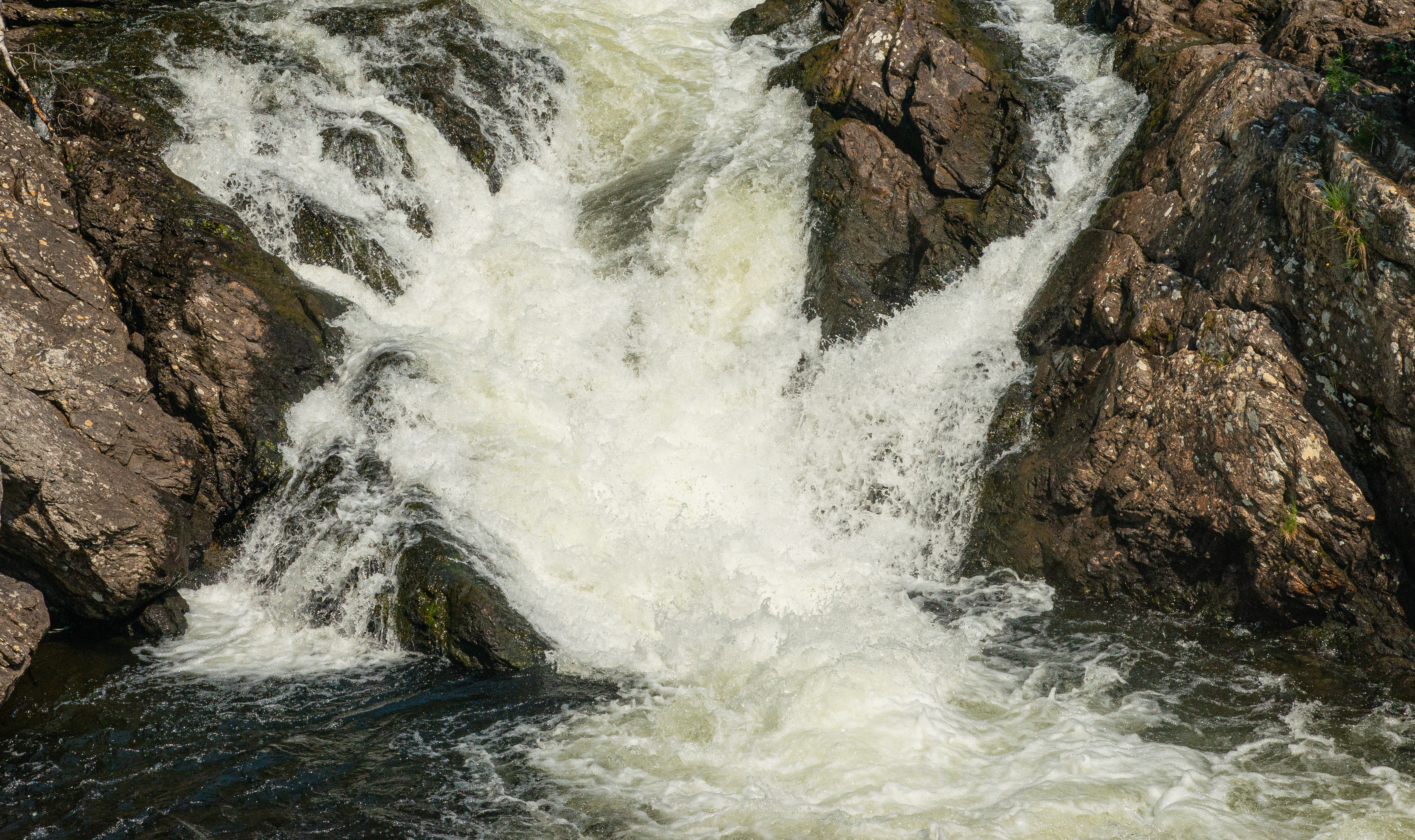 Moderat kalkrik (2,6 mg Ca/l) fastbunn (på fast fjell) i klar elv med hvitstryk i Finnstadåa i Rendalen kommune.