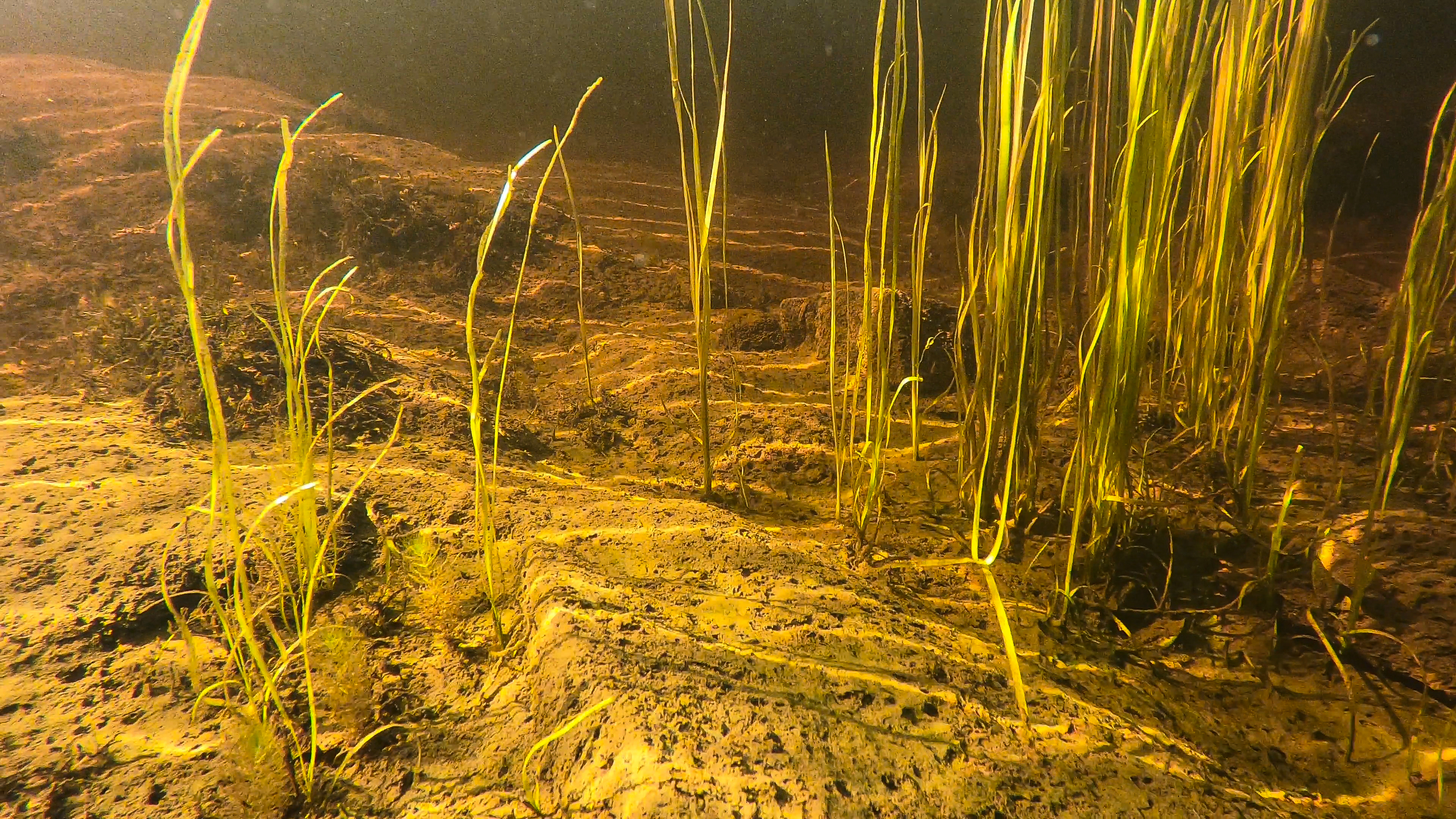 Finbunn (silt) med flotgras Sparganium angustifolium som dekker mindre en 25 % i humøs elv (51 mg Pt/l) i Simoa i Sigdal kommune.