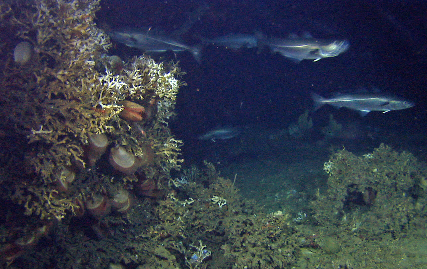 Aphotic marine sediment M5 is, in terms of area, the largest major type within marine and terrestrial substrates in areas under Norwegian environmental management. Four assessment entities for minor types or combinations of minor types are defined under aphotic marine sediment. Common for these entities is that they are exposed to bottom trawling, partly in areas where there is intensive commercial fishing. They represent ecosystem types that are distinguished by having a particular substrate, being represented by fragile perennial coral species, occuring at only a few localities within a small area, or they are based on variations in the natural landscape. This applies to Sponge spicule bottom in the southern Barents Sea, Soft-bottom bamboo coral garden, Radicipes coral meadows in the areas around Bjørnøya, and Aphotic mud in Skagerrak.