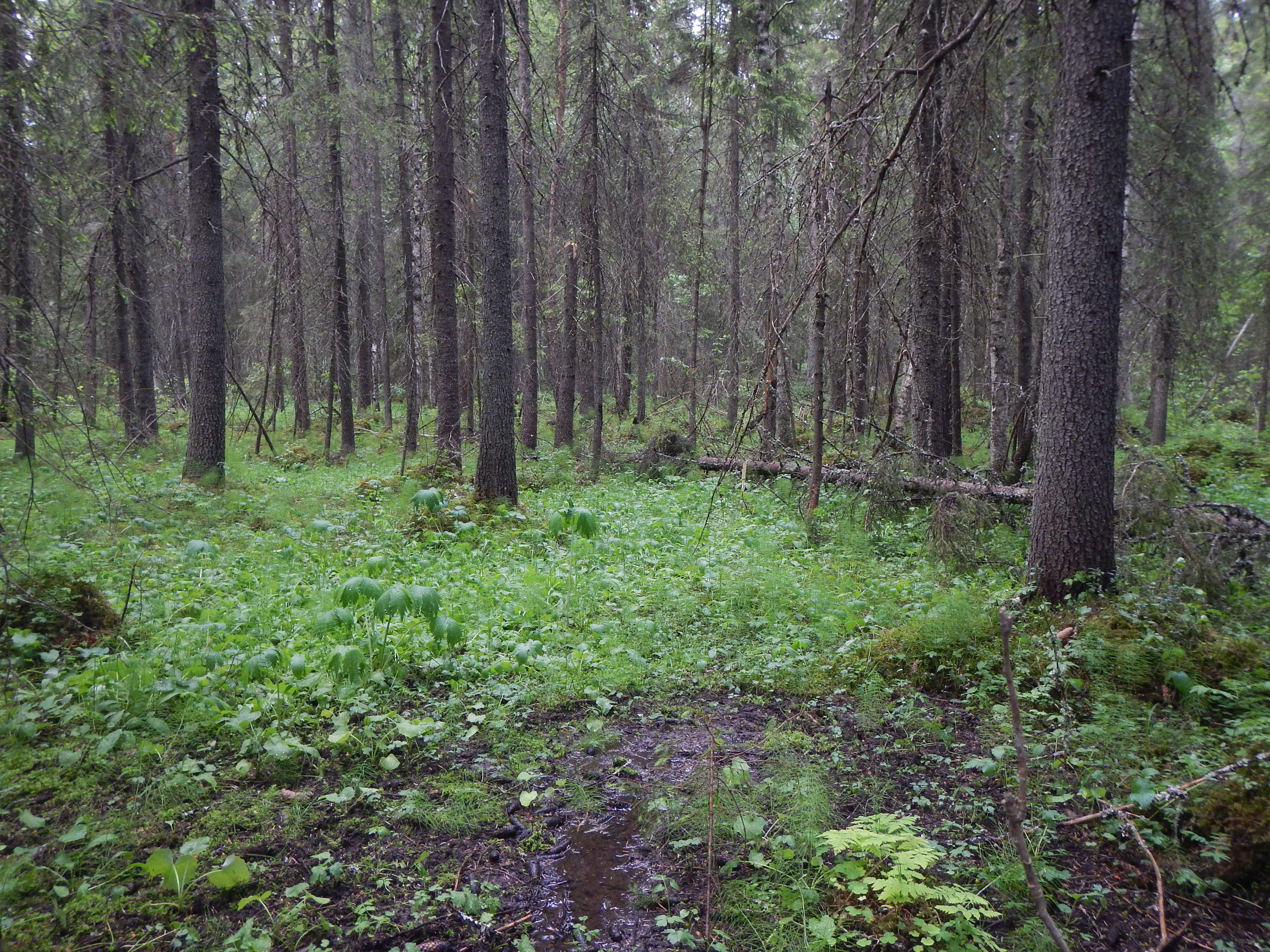 Mire and swamp forest encompasses wooded mire (with peat) and wet forest with little or no peat accumulation. The ground will often be humic "swampy soil". The addition of soil water with minerals is even and abundant, and the groundwater level is high. The vegetation includes species associated with forest, swamp and mire, and there is high biodiversity in lime-rich ecosystem types. The species composition varies strongly from type to type, and partly from place to place. This is usually associated with variation in lime-content, moisture conditions and water supply, tree species dominance, and peat accumulation as well as regional variation (cf. Jansson et al. 2011).