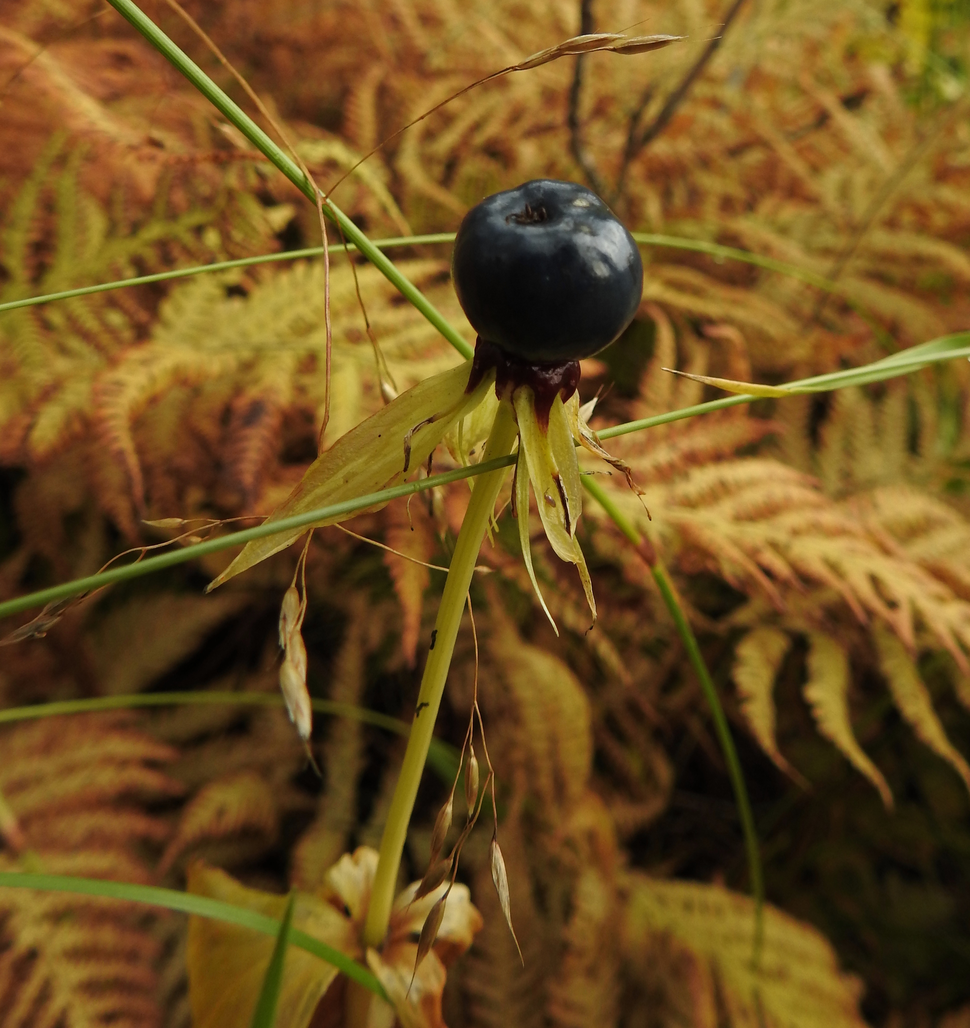 Fra Norge er det kjent drøyt 4 700 planter, noe som utgjør bare litt over halvparten av alle artene vi antar finnes her. Bildet viser fruktstanden til firblad Paris quadrifolia.