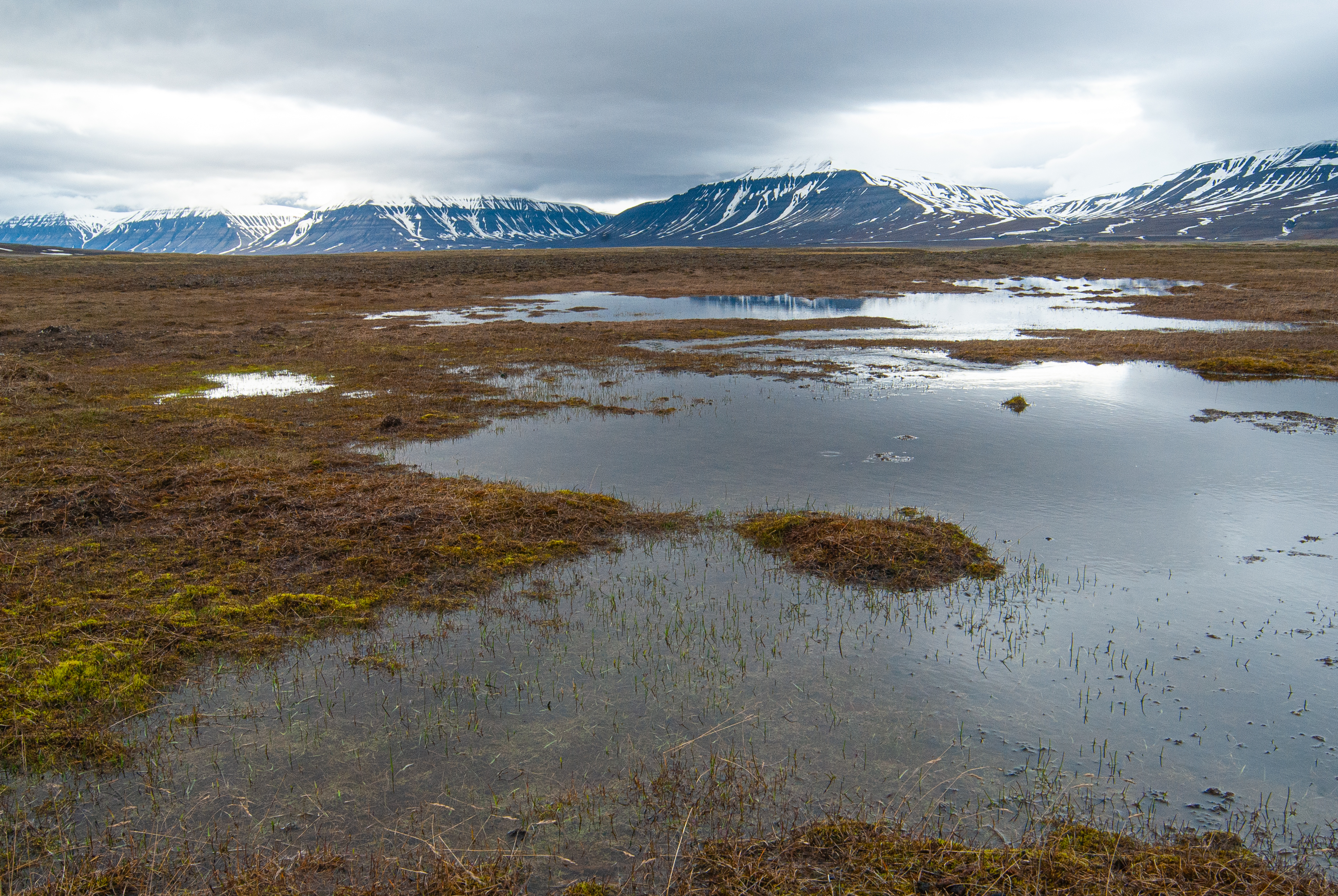 Liten innsjø i Sassendalen på Svalbard med L10 Arktisk permafrost-innsjøbunn.
