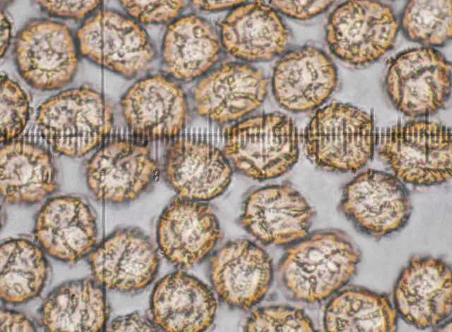 Oligonema fulvum har spredte sporokarper og vortete sporer.