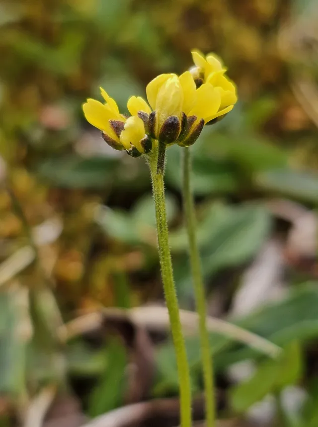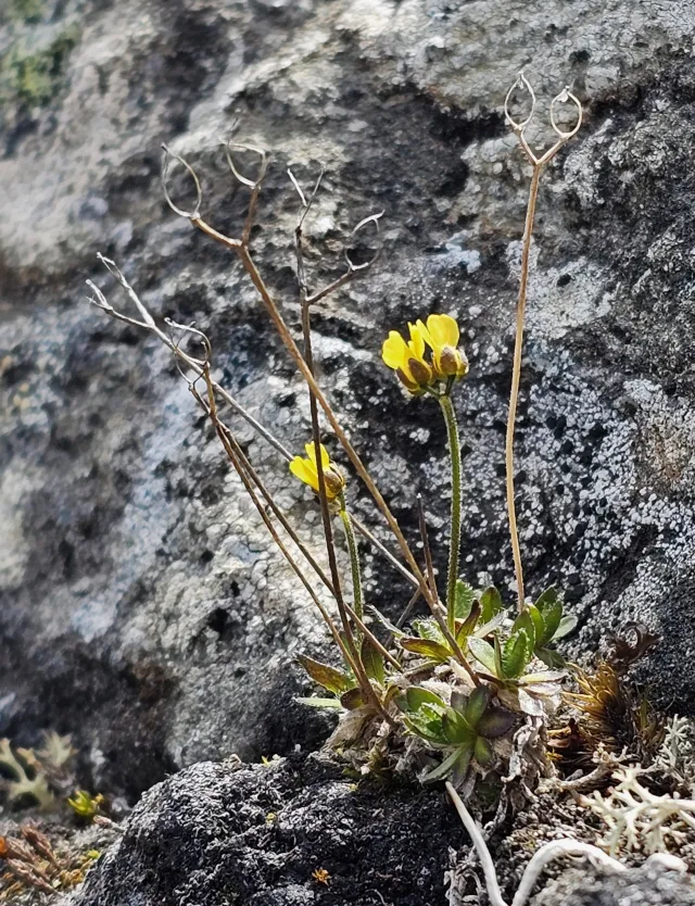 Gullrublom veks i snøleie og på flytjord, i fuktig tundra og polygonmark, og – som her – på fuktige berghyller. Han veks oftast på baserik grunn som her på Høgegga i Folldal.