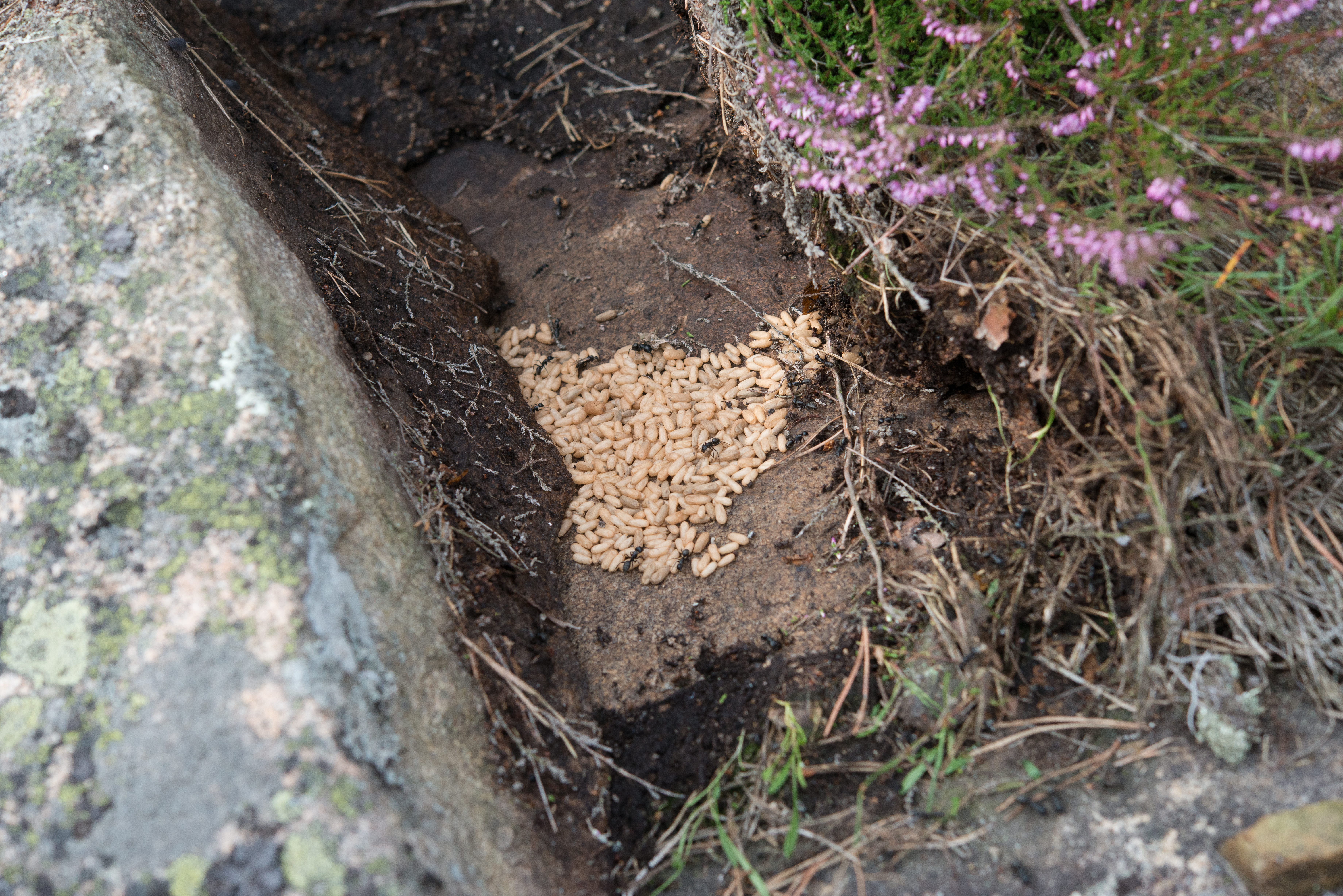 Nær bol av sotstokkmaur Camponotus vagus. Spjærøy, Hvaler i Østfold. 11. august 2015.