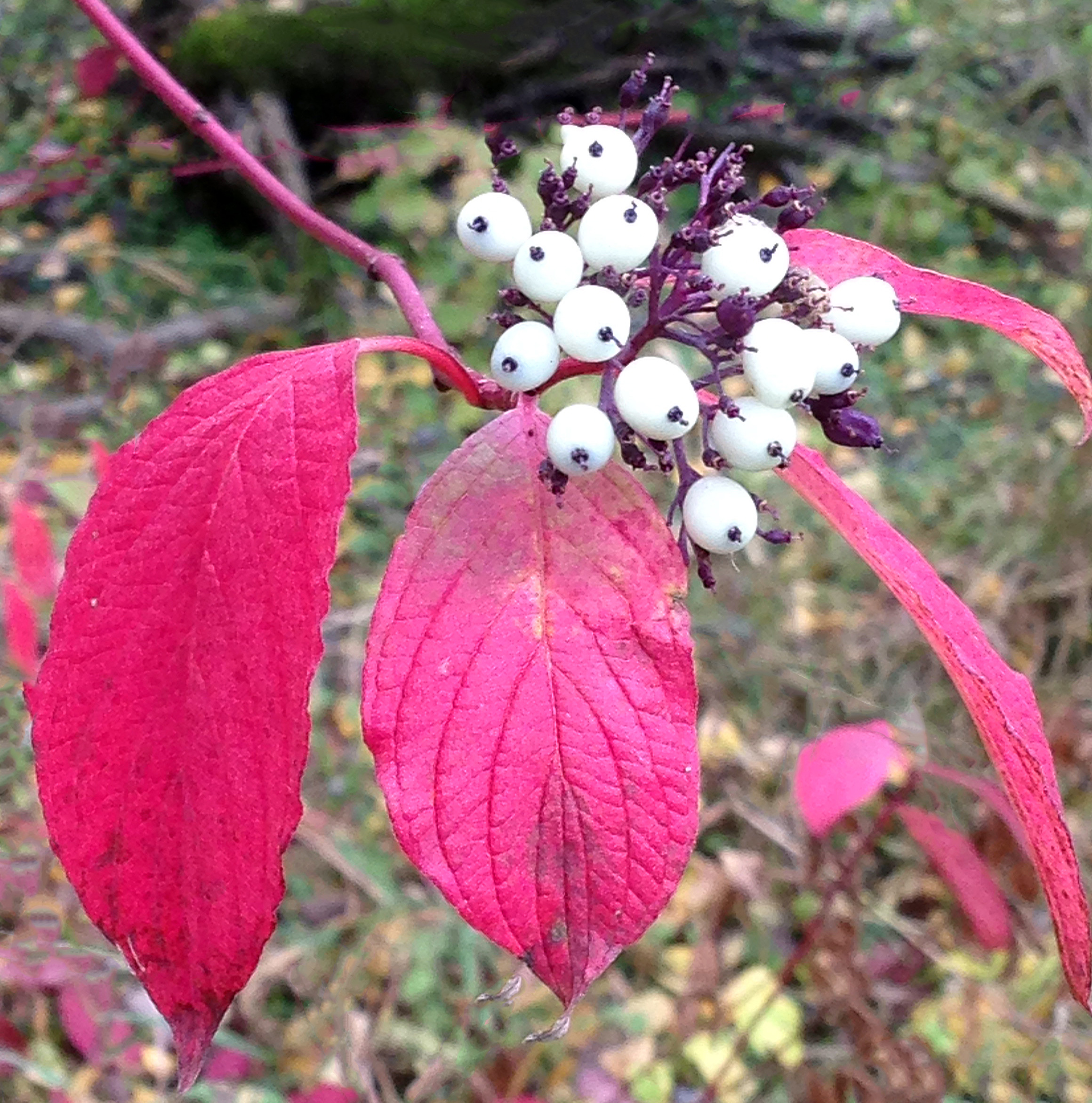 Modne frukter er rent hvite. På samme tid er bladene gjerne sterkt røde. Fra Øvre Eiker (Buskerud).