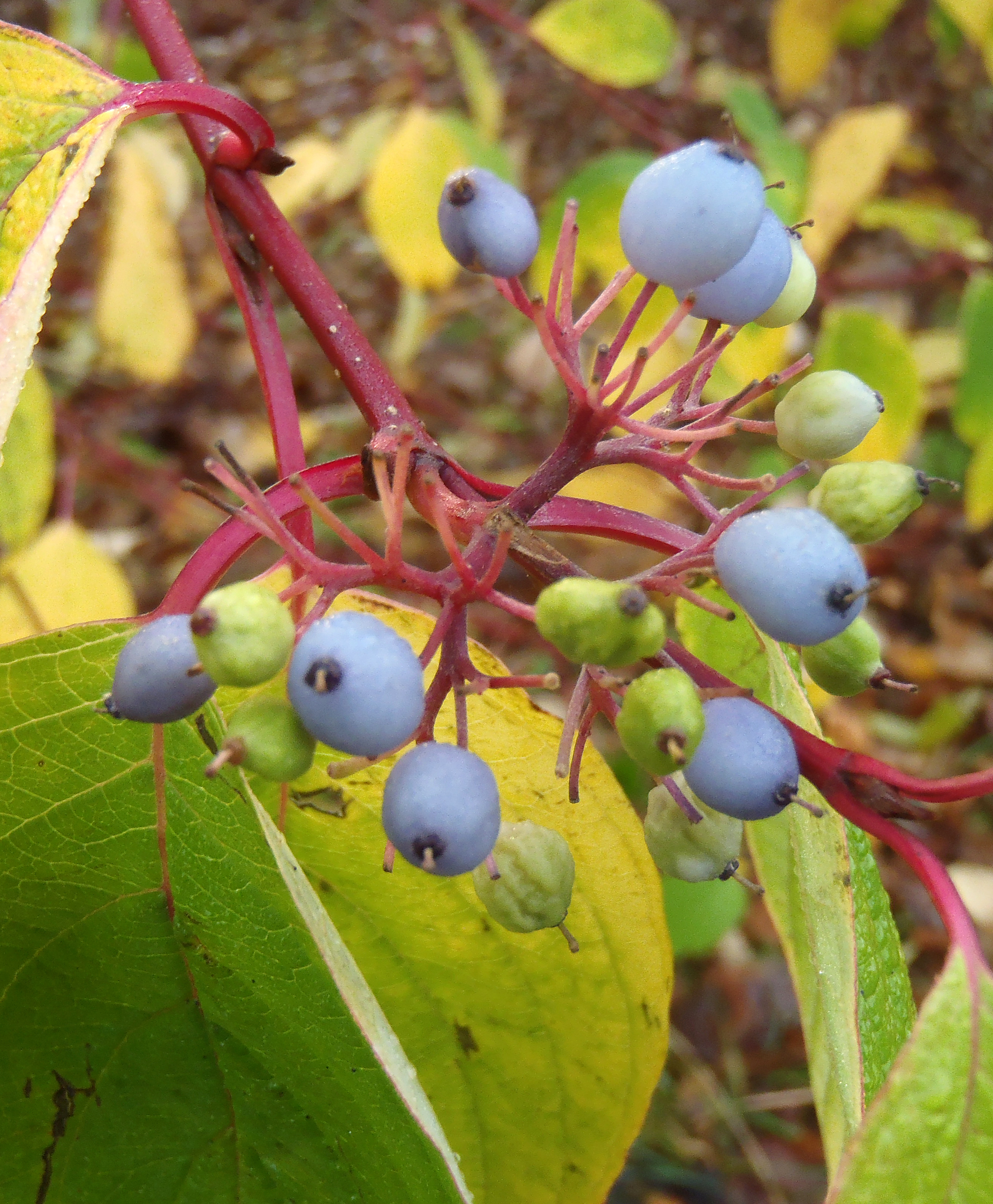 Moden frukt hos sibirkornell er hvit, se også et foregående bilde. Fra Stjørdal (Nord-Trøndelag).