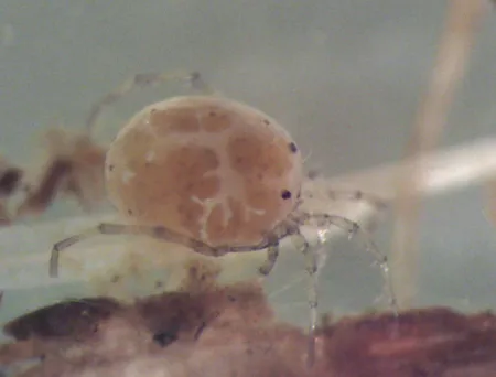 Vannmidden Hydrachna geographica. Bildet er tatt ved Mjøntjern.