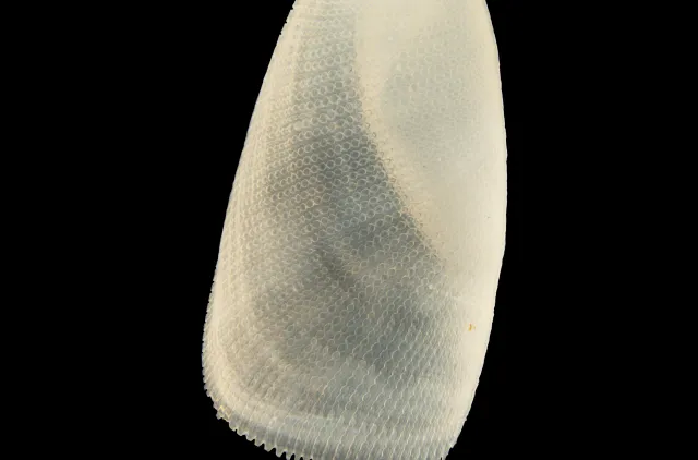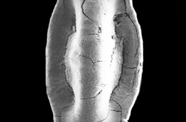 Kråsplatens ventralside (SEM), målestokk = 200 µm.