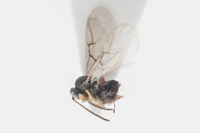 Her har det antakeligvis vært en gall av A. legitimus som har blitt parasittert av inkvilinen Synergus clandestinus.