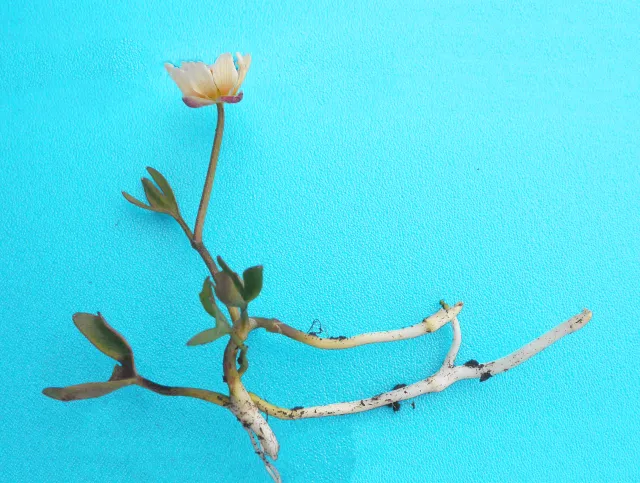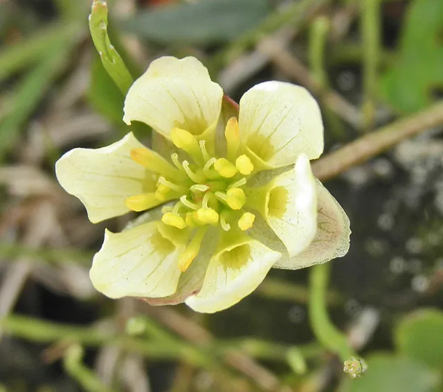 Blomen har 5–6 gulkvite kronblad.