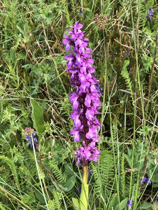 Vårmarihand i ei eng på baserik skjelsand i Refvika i Vågsøy.